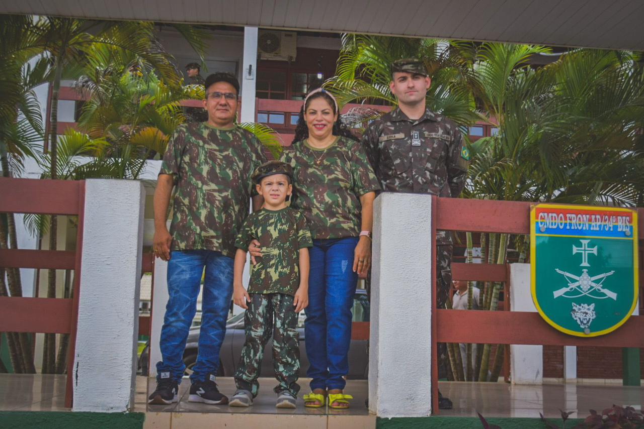 Por fim, a família se emocionou com o desfile da banda de música da 2ª Companhia de Fuzileiros de Selva. Eles aproveitaram a oportunidade para tirar fotos com militares e conhecer o acervo cultural do quartel, que conta um pouco da história do Exército no Amapá.