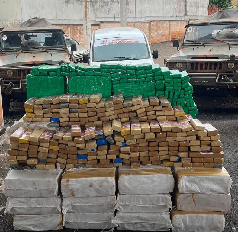 Tropas da 4ª Brigada de Cavalaria Mecanizada apreenderam 1,7 toneladas de maconha na Rodovia 166, no município de Maracaju (MS). A ação foi realizada durante a Operação Ágata Fronteira Oeste II, que visa combater atividades ilícitas na região de fronteira entre Brasil, Paraguai e Bolívia.